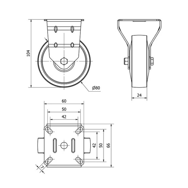 Rueda poliamida negra fija Alex diametro 80 mm. TW0318