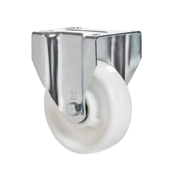 Rueda de poliamix blanco, especialmente indicada para soportar altas cargas de hasta 400 Kg.