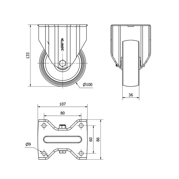 Rueda poliamix fija Alex diametro 100 mm. 2-0131