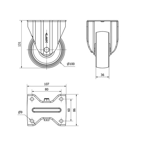 Rueda poliamix fija Alex diametro 100 mm. 2-0157