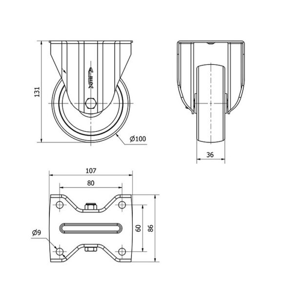 Rueda poliamix fija Alex diametro 100 mm. modelo 2-1004
