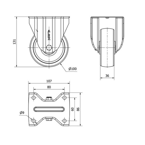 Rueda poliamix fija Alex diametro 100 mm. modelo 2-2337