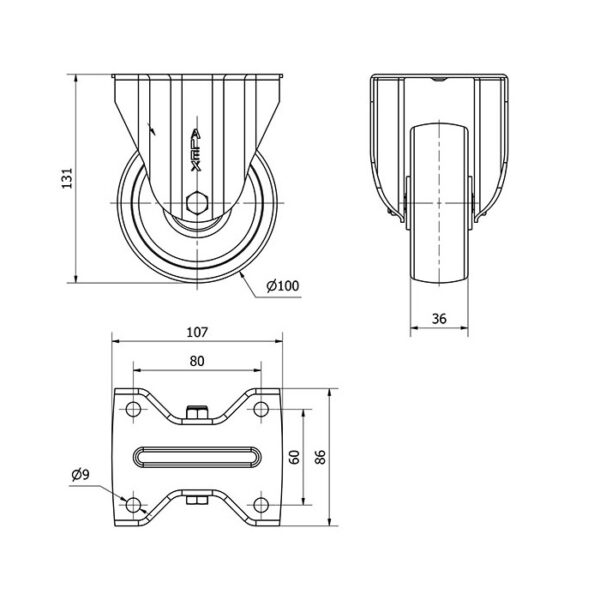 Rueda poliamix fija Alex diametro 100 mm. modelo 2-2778