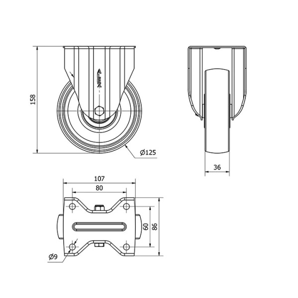 Rueda poliamix fija Alex diametro 125 mm. 2-0174
