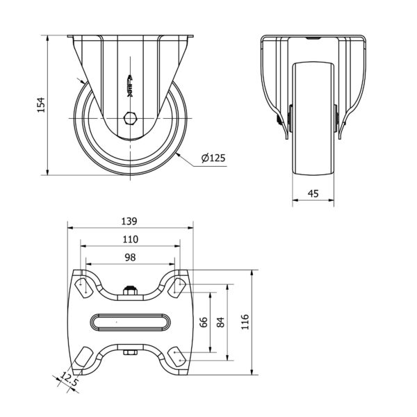 Rueda poliamix fija Alex diametro 125 mm. modelo 2-2284