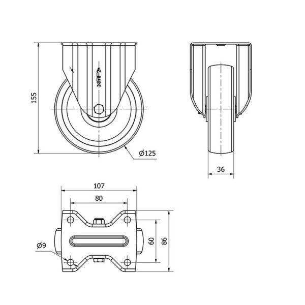 Rueda poliamix fija Alex diametro 125 mm. modelo 2-2780