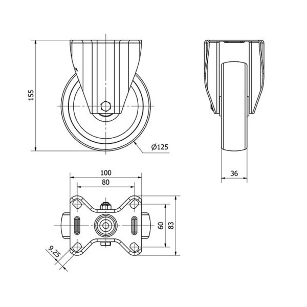 Rueda poliamix fija Alex diametro 125 mm. modelo 2-3082