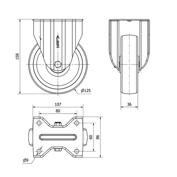 Rueda poliamix fija Alex diametro 125 mm. modelo 2-4949