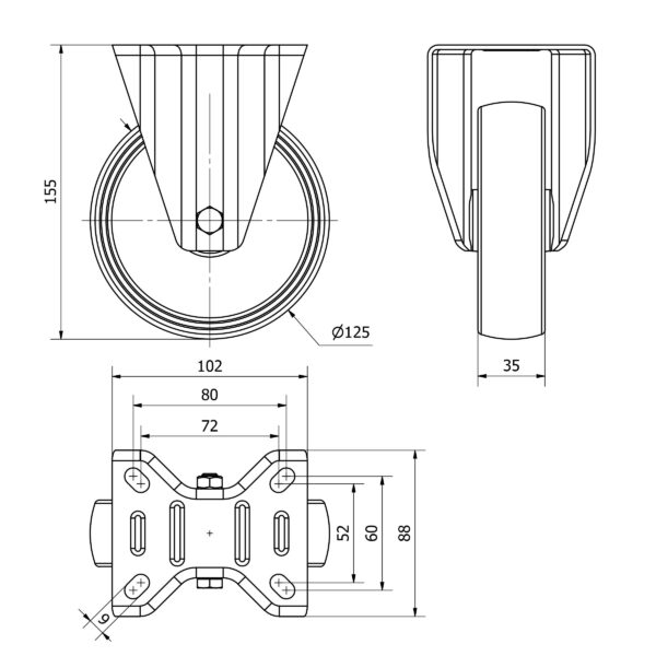 Rueda poliamix fija Alex diametro 125 mm. TW0203