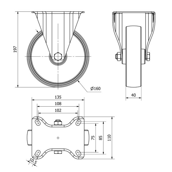 Rueda poliamix fija Alex diametro 160 mm. modelo TW0204