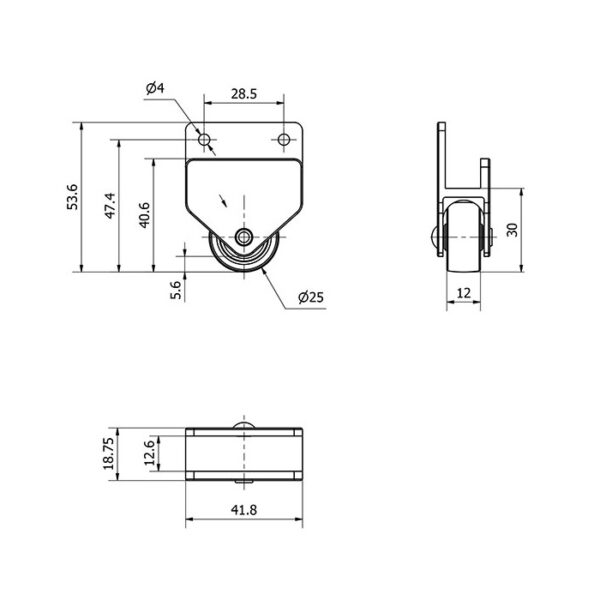 Rueda poliamix fija Alex diametro 25 mm. modelo 1-0778