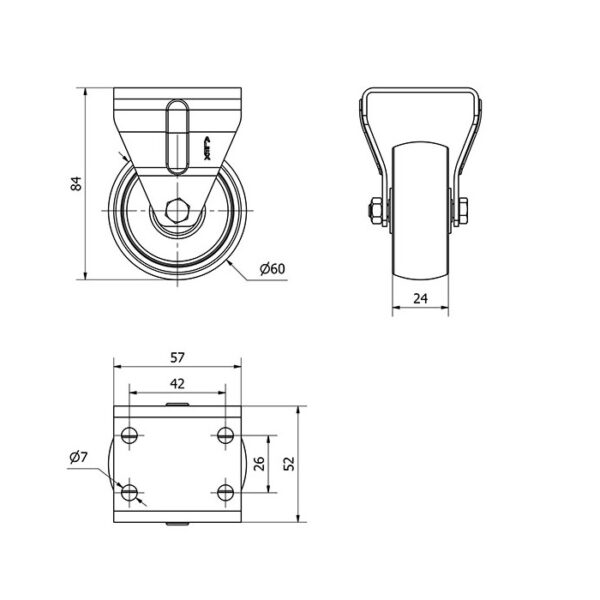Rueda poliamix fija Alex diametro 60 mm. modelo 2-1315