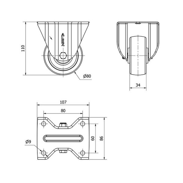 Rueda poliamix fija Alex diametro 80 mm. modelo 2-2336