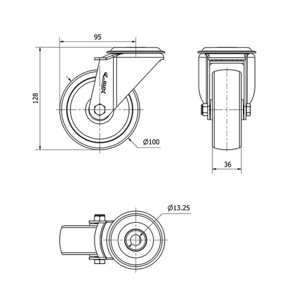 Rueda poliamix giratoria Alex diametro 100 mm. modelo 2-1369