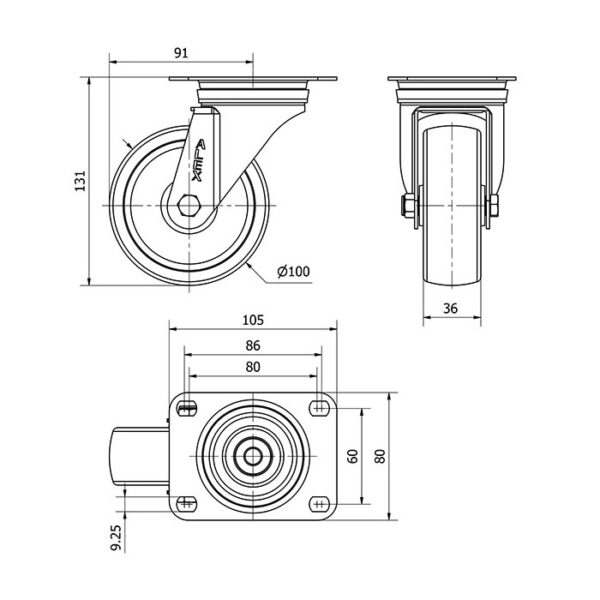 Rueda poliamix giratoria Alex diametro 100 mm. modelo 2-1720