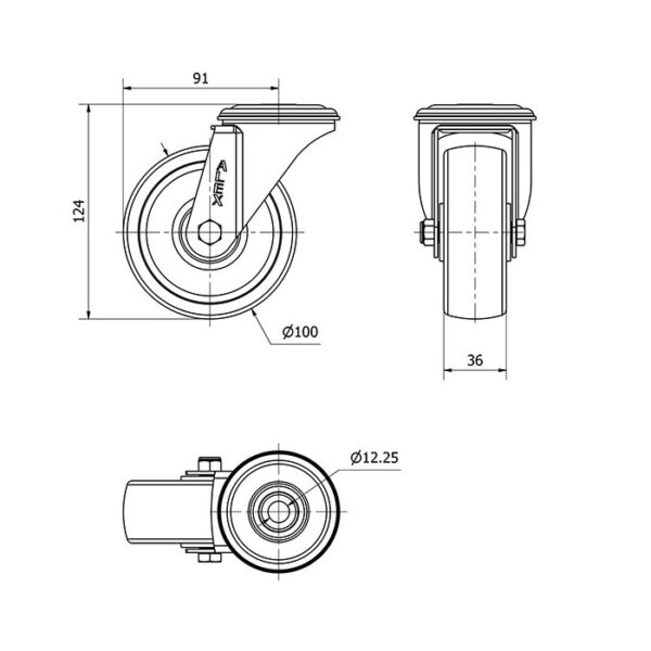 Rueda poliamix giratoria Alex diametro 100 mm. modelo 2-4126