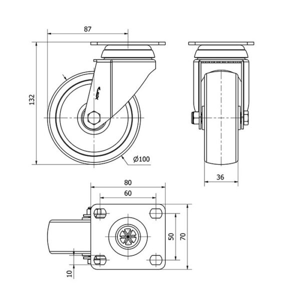 Rueda poliamix giratoria Alex diametro 100 mm. modelo 2-4764 EAN 8422202247649