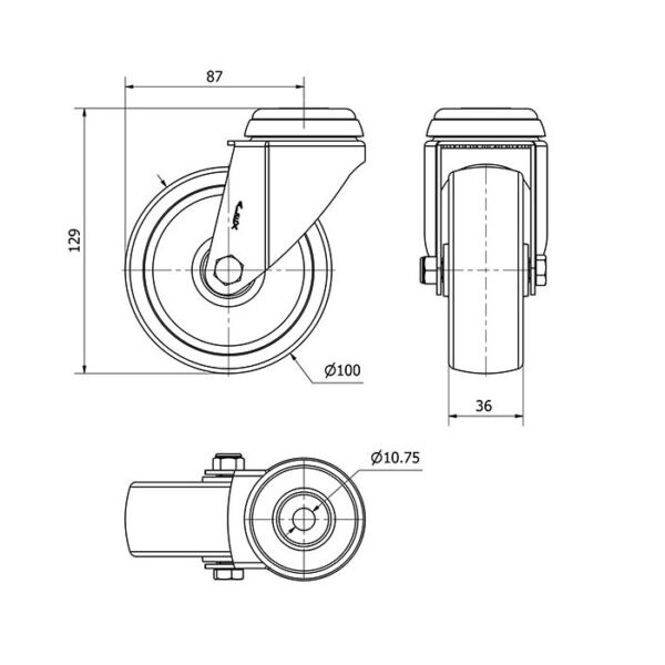 Rueda poliamix giratoria Alex diametro 100 mm. modelo 2-4766 EAN 8422202247663