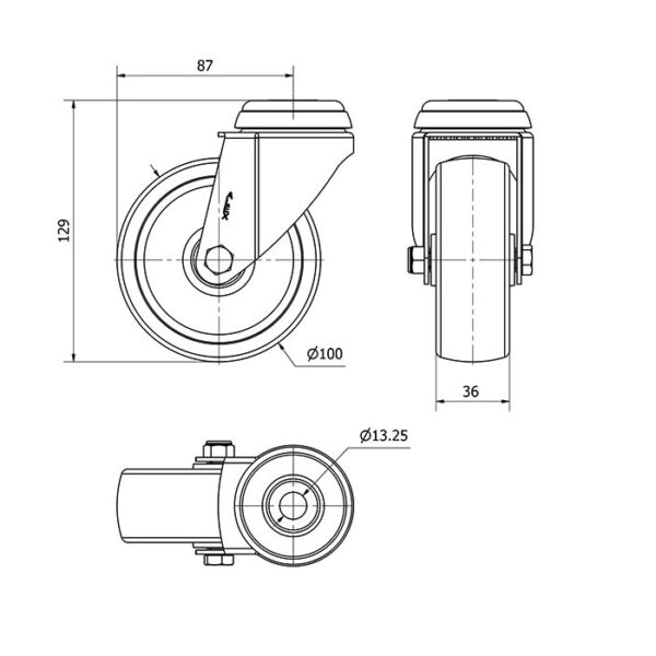 Rueda poliamix giratoria Alex diametro 100 mm. modelo 2-4768 EAN 8422202247687