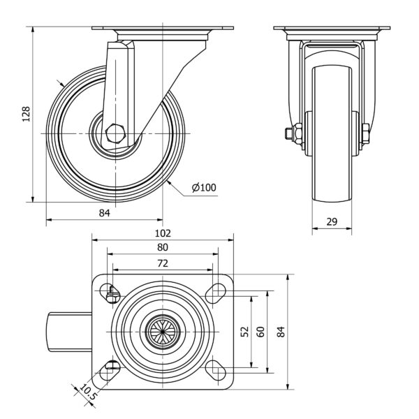 Rueda poliamix giratoria Alex diametro 100 mm. TW0197 EAN 8422202001975