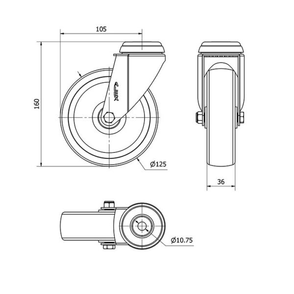 Rueda poliamix giratoria Alex diametro 125 mm. modelo 2-1433