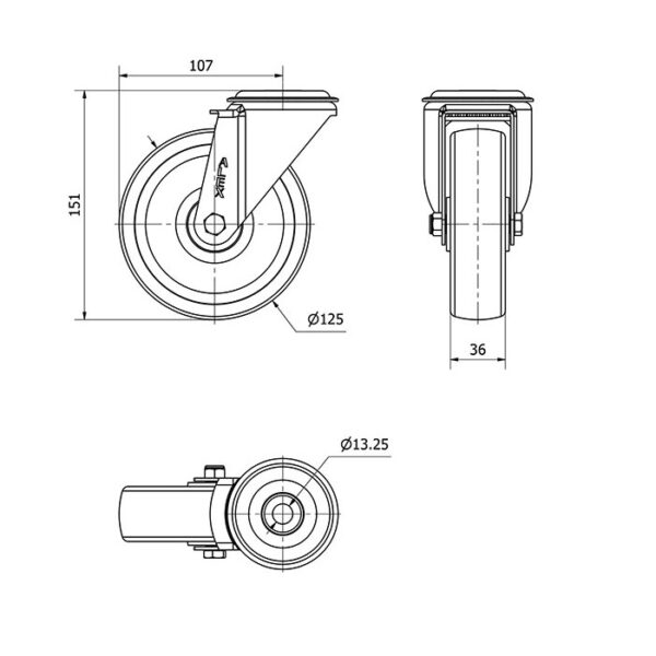 Rueda poliamix giratoria Alex diametro 125 mm. modelo 2-2801 EAN 8422202228013