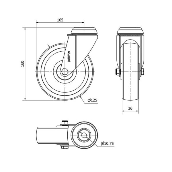Rueda poliamix giratoria Alex diametro 125 mm. modelo 2-4804