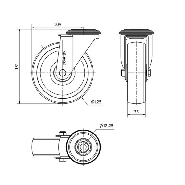Rueda poliamix giratoria Alex diametro 125 mm. modelo 2-4921