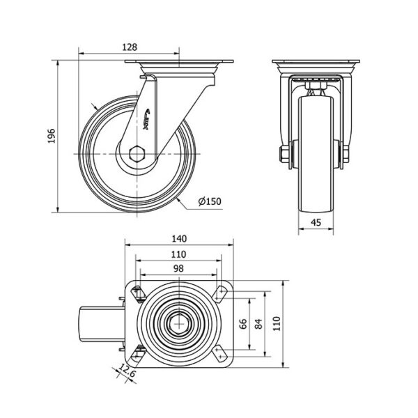 Rueda poliamix giratoria Alex diametro 150 mm. 2-1166