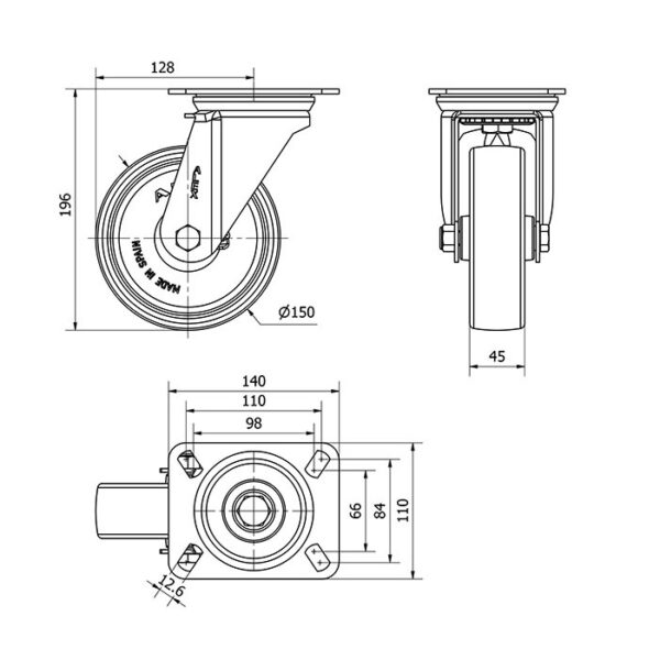 Rueda poliamix giratoria Alex diametro 150 mm. modelo 2-0241 EAN 8422202202419