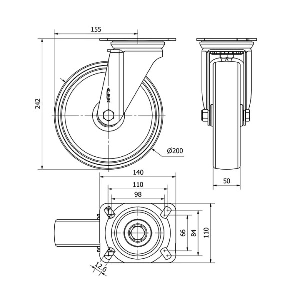 Rueda poliamix giratoria Alex diametro 200 mm. 2-3629