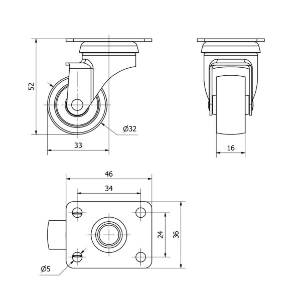 Rueda poliamix giratoria Alex diametro 30 mm. modelo TW0164 EAN 8422202001647
