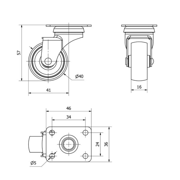 Rueda poliamix giratoria Alex diametro 40 mm. modelo TW0165
