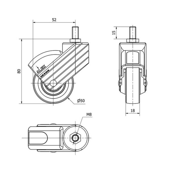 Rueda poliamix giratoria Alex diametro 50 mm. modelo 1-0765
