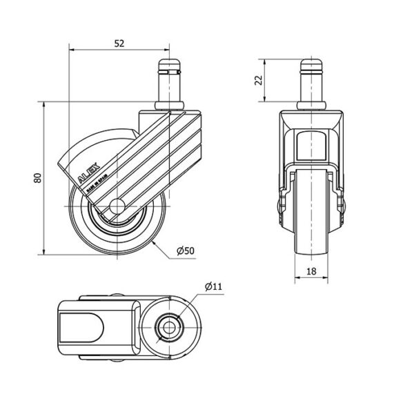 Rueda poliamix giratoria Alex diametro 50 mm. modelo 1-0785
