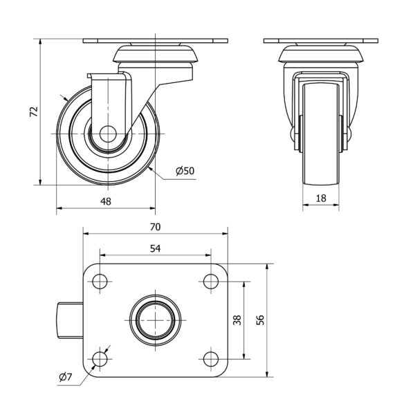 Rueda poliamix giratoria Alex diametro 50 mm. modelo TW0166 EAN 8422202001661