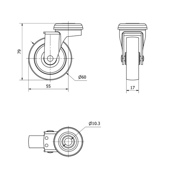 Rueda poliamix giratoria Alex diametro 60 mm. modelo TW0171 EAN 8422202001715