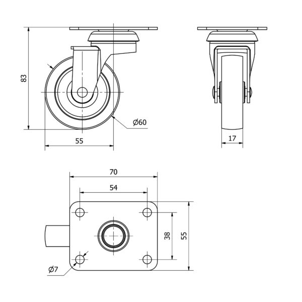 Rueda poliamix giratoria Alex diametro 60 mm. TW0167