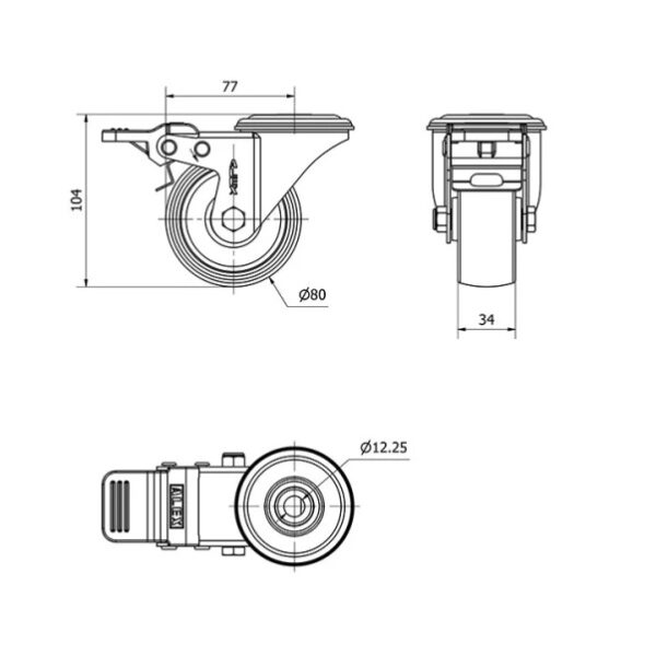 Rueda poliamix giratoria Alex diametro 80 mm. 2-0125