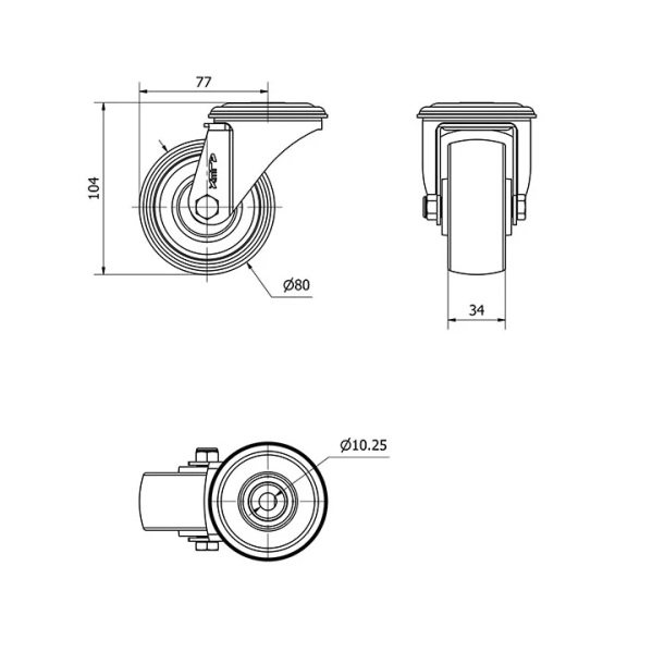 Rueda poliamix giratoria Alex diametro 80 mm. 2-0152