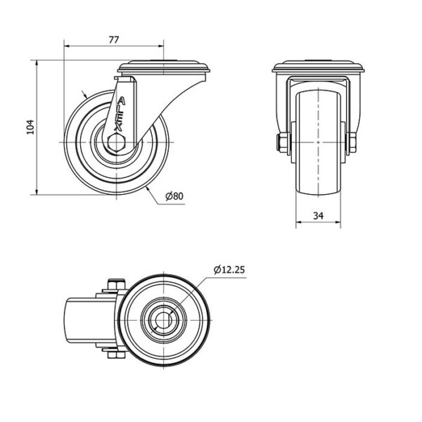 Rueda poliamix giratoria Alex diametro 80 mm. modelo 2-4147