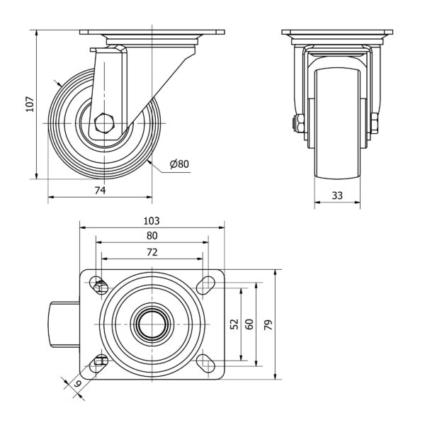 Rueda poliamix giratoria Alex diametro 80 mm. modelo TW0042 EAN 8422202000428