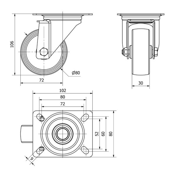 Rueda poliamix giratoria Alex diametro 80 mm. modelo TW0196 EAN 8422202001968