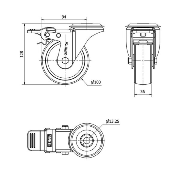 Rueda poliamix giratoria con freno Alex diametro 100 mm. modelo 2-1648