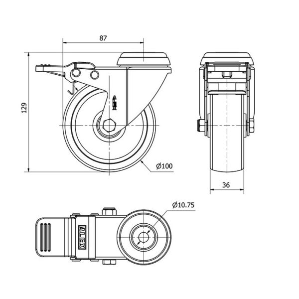Rueda poliamix giratoria con freno Alex diametro 100 mm. modelo 2-4767