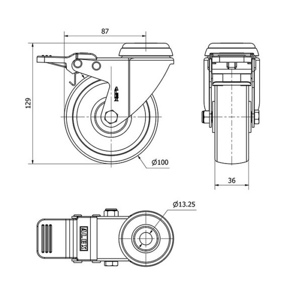 Rueda poliamix giratoria con freno Alex diametro 100 mm. modelo 2-4801