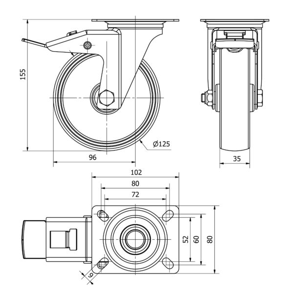 Rueda poliamix giratoria con freno Alex diametro 125 mm. modelo TW0208 EAN 8422202002088