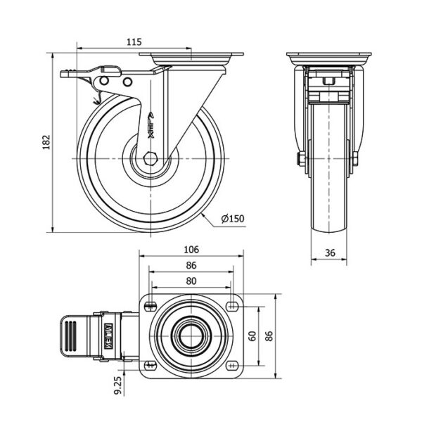 Rueda poliamix giratoria con freno Alex diametro 150 mm. modelo 2-4267