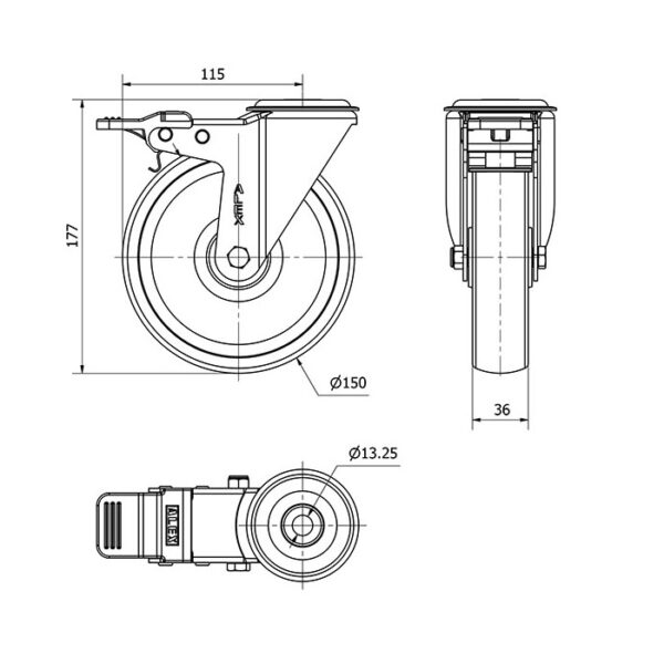 Rueda poliamix giratoria con freno Alex diametro 150 mm. modelo 2-4269