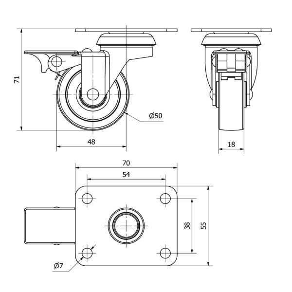 Rueda poliamix giratoria con freno Alex diametro 50 mm. modelo TW0173 EAN 8422202001739